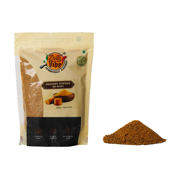 Zesty Vibe offers premium quality organic jaggery powder. Our jaggery is naturally made from sugarcane and is a healthier alternative to refined sugar. It is not made using chemical agents like bleach; it retains its nutrients because it is not refined. Our premium quality jaggery powder dissolves easily & can be used for any beverage.