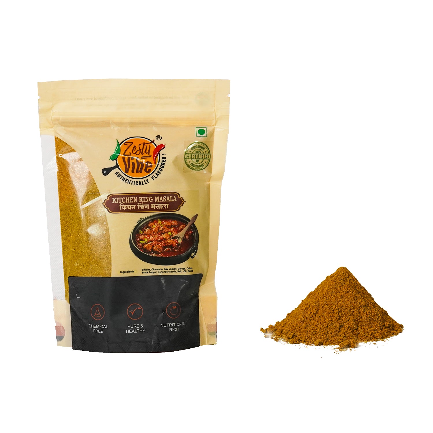 किचन किंग मसाला एक ऐसा ही स्वादिष्ट मसाला मिश्रण है जिसका इस्तेमाल ज़्यादातर भारतीय व्यंजनों में किया जाता है। यह कई तरह के मसालों से बना एक मसाला मिश्रण है और गहरे भूरे रंग का होता है। यह मसाला मिश्रण व्यंजनों में एक अद्भुत सुगंध और मसालेदार स्वाद जोड़ता है।