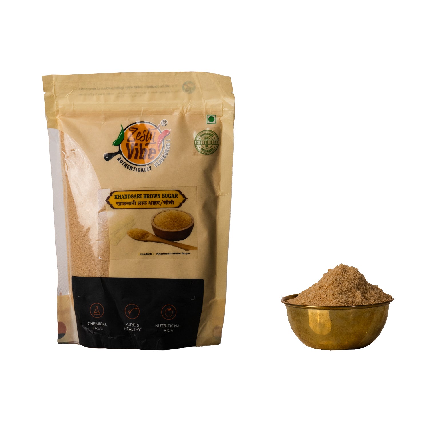 खांड या खांडसारी चीनी को मस्कोवाडो चीनी, बारबाडोस चीनी या ब्राउन शुगर भी कहा जाता है। यह गन्ने की चीनी होती है जिसे बिना रिफाइंड किए, गुड़ के साथ मिलाया जाता है। इसकी बनावट गीली रेत जैसी होती है और गुड़ की उपस्थिति इसे गहरे भूरे रंग का रंग देती है। यह सफेद चीनी का एक ज़्यादा स्वास्थ्यवर्धक विकल्प है। गन्ने के रस को सुखाया जाता है और फिर एक बेल्ट-चालित अपकेंद्री मशीन का उपयोग करके चीनी के क्रिस्टल अलग किए जाते हैं और जानबूझकर कुछ गुड़ छोड़ दिया जाता है जिससे ब्राउन शुगर आयरन और पोटेशियम जैसे पोषक तत्वों का एक समृद्ध स्रोत बन जाती है। यह पूरी तरह से बिना रिफाइंड होती है और इसमें कोई भी अतिरिक्त रसायन नहीं मिलाया जाता है। इसका उपयोग रोज़ाना इस्तेमाल की जाने वाली सफेद चीनी की तरह ही किया जा सकता है। आप इसे अपनी चाय, कॉफ़ी या किसी भी मीठे व्यंजन में मिला सकते हैं और बिना किसी अपराधबोध के इसका आनंद ले सकते हैं।