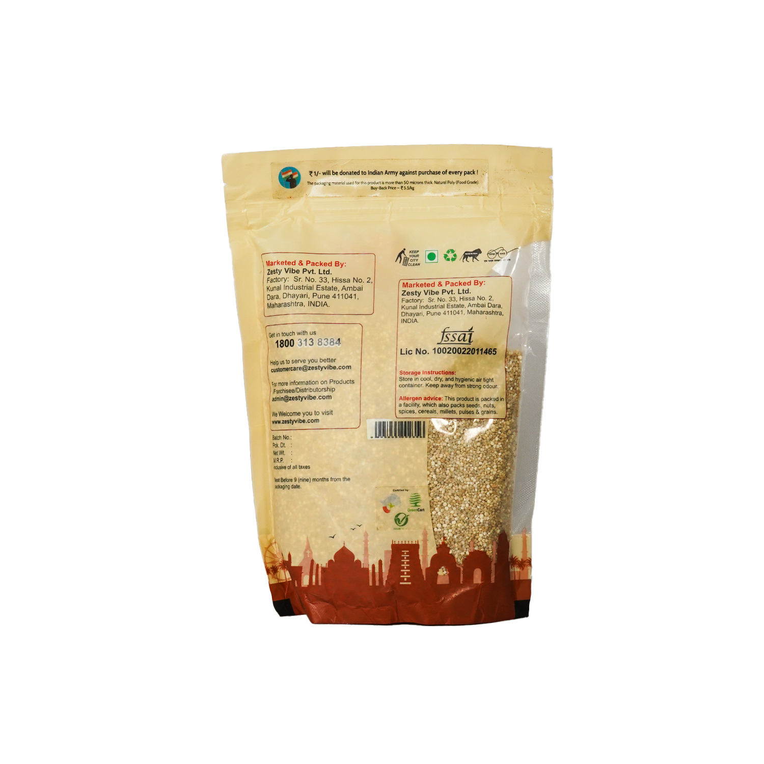 ज़ेस्टी वाइब बार्नयार्ड बाजरा (झंगोरा) प्रोटीन, कैल्शियम, आयरन, खनिज और बी कॉम्प्लेक्स विटामिन से भरपूर पोषक तत्वों का भंडार है। इसमें कार्बोहाइड्रेट की मात्रा भी कम होती है और यह ग्लूटेन-मुक्त भी होता है, जिससे यह ग्लूटेन एलर्जी, टाइप II मधुमेह और हृदय रोगों से पीड़ित लोगों के लिए एक बेहतरीन अनाज बन जाता है।