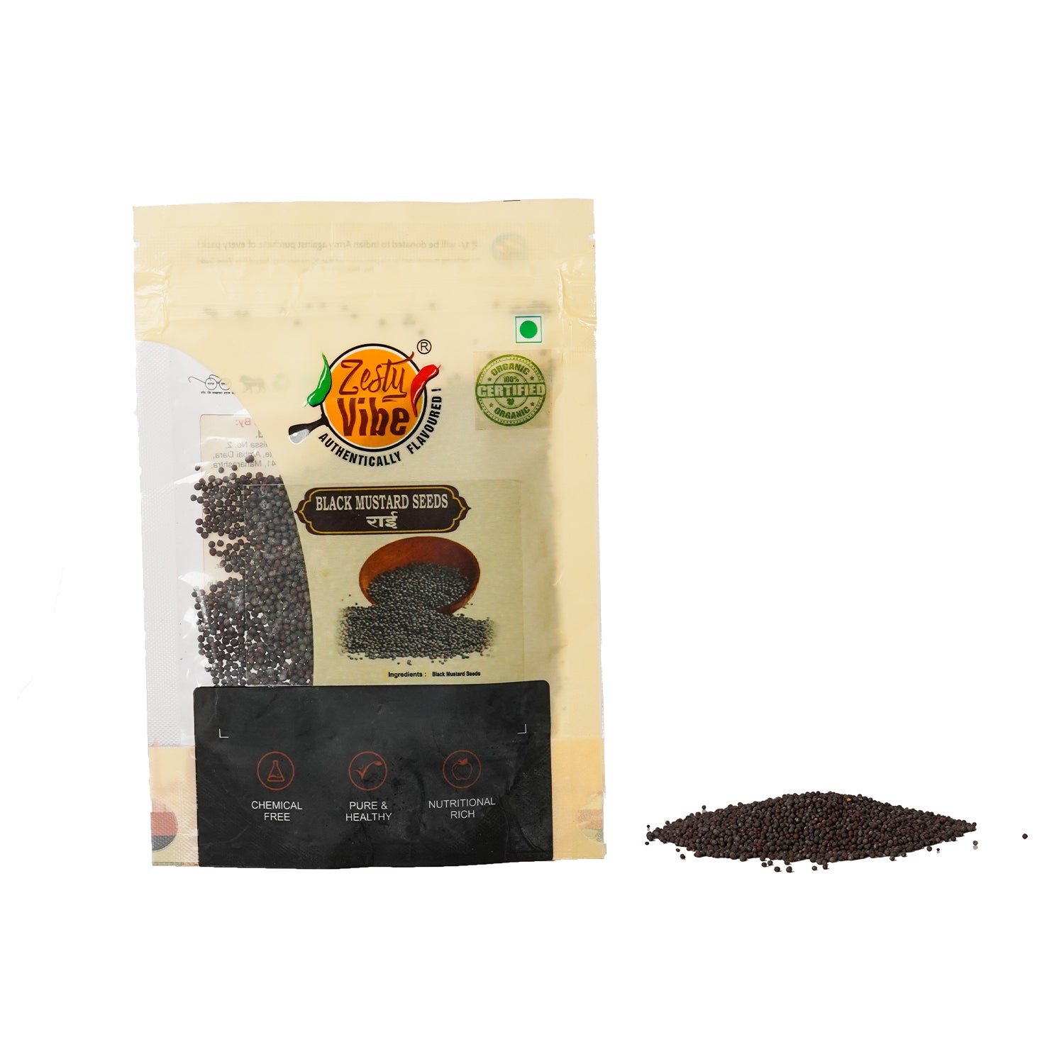 झेस्टी वाइब्स ब्लॅक मस्टर्ड सीड्स हे सेंद्रिय, रसायन आणि कीटकनाशकांपासून मुक्त आहेत. ते बहुतेक चवीला तिखट असतात. कोणतेही कृत्रिम रंग नाहीत, प्रिझर्व्हेटिव्हशिवाय, ताजे, स्वच्छ आणि उच्च दर्जाचे. भारतीय घरांमध्ये फोडणी ते डाळ, कढीपत्ता इत्यादींसाठी मोहरीचा...