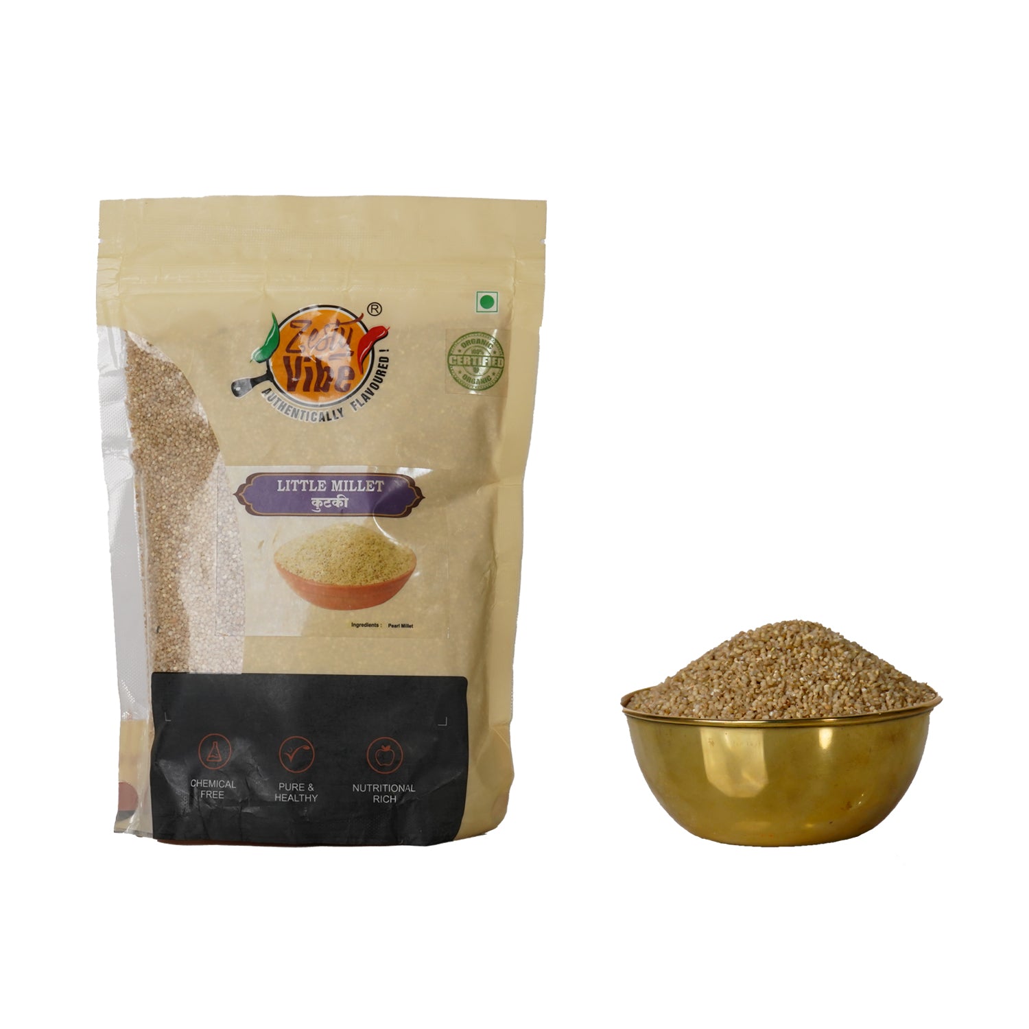 Panicum miliare) is one of the small millets commonly known as ‘kutki’ in Hindi, ‘samai’ in Tamil and ‘samalu’ in Telugu. It is grown throughout India as a traditional crop and although related to proso millets has seeds much smaller than them. It is mostly consumed as rice. Any recipe made with staple rice can be prepared using little millets with similar taste. As these millets are smaller in size, they cook faster than rice and other millets. Little millets could be milled into flour for making roti, baked and fried items.The whole grains can be sprouted and used in salads. Dosa, upma, kichidi, tomato rice, lemon rice, curd rice, porridge, chakli, payasam, halwa and kesari are few traditional recipes prepared in different millet growing states in India.