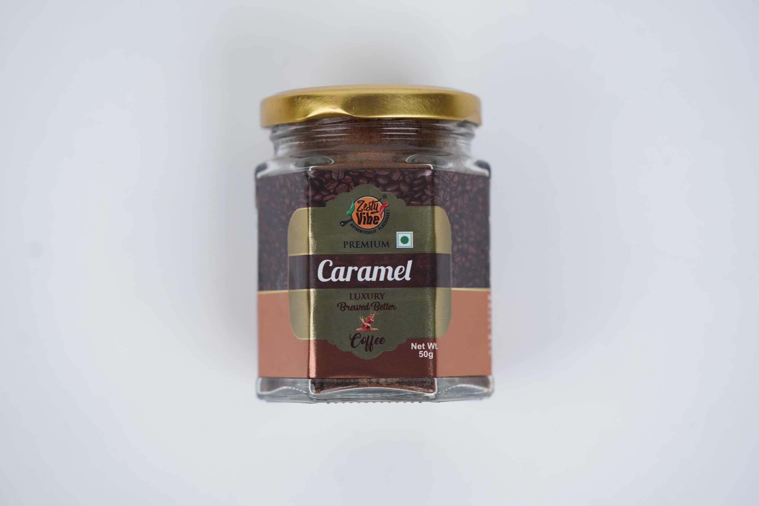 Indulge in the smooth, buttery flavor of our Premium Caramel Coffee, expertly crafted using the freeze-dry method to lock in its rich aroma and bold taste.